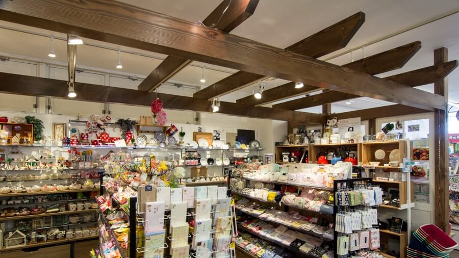 陳列台の積み上げを控え、店内を広く見通すことができるとともに、化粧品はナチュラルシック、雑貨はナチュラルポップの一体感のある空間設計。